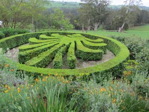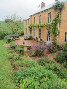 As the clouds cleared, our next visit was to “Picardy”, the French-inspired home and garden of Marian and Bryce Somes. They have created their own piece of France in these hills, with rammed-earth buildings, generous plantings of roses and perennials, a Dogwood grove and orchard, as well as a large herb and vegetable garden. The fertility of their property was evident in their Citrus grove where Blood Oranges and Cumquats had not a yellow leaf in sight – and this without any fertilisers! Some of our attendees took the opportunity to purchase Marian’s book “Picardy” which describes her 22 year realisation of a garden dream. (The book published in April 2018 is available in all good book stores.)