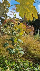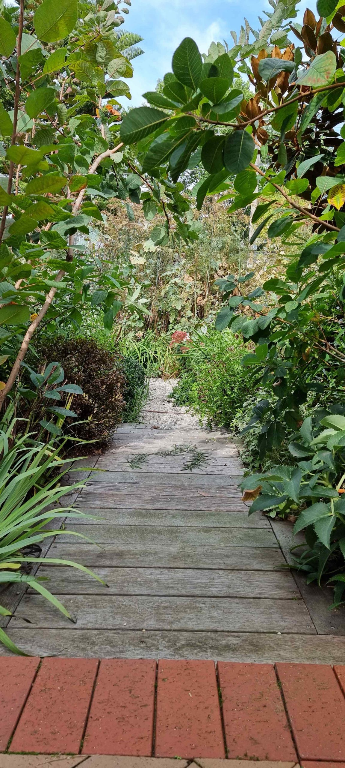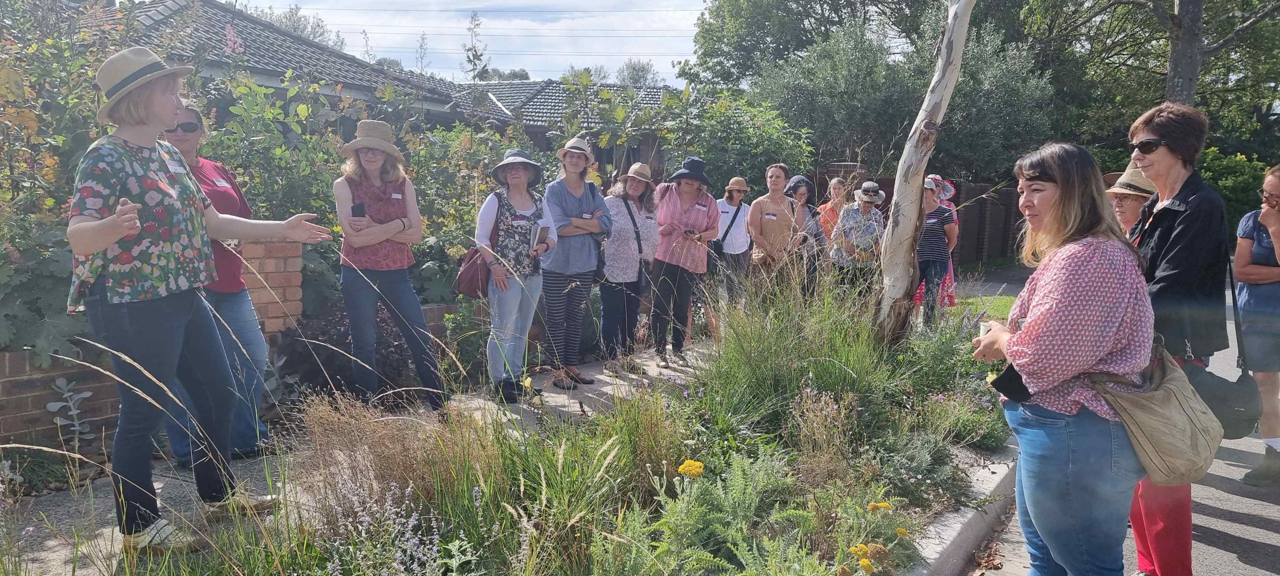 The last of Summer’s heat could be felt the morning that we visited Jac Semmler’s Frankston garden, but the shift into Autumn was seen in the plants and in Jac’s work. As attendees arrived, they were welcomed to have a sneak peek of the garden along with morning tea and a good chat.