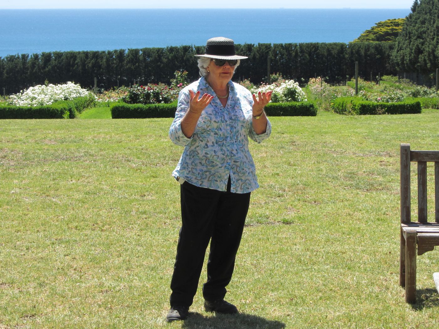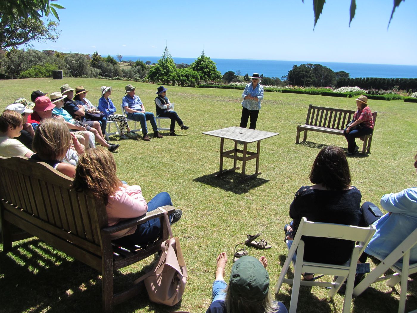 Judy described her experiences as a novice taking over the property 20 years ago and building it up gradually to include functions, accommodation, a restaurant, vineyard, olive grove, orchard and lots more – with little outside help. She faced many obstacles along the way not least of which was a rose virus which threatened the garden’s viability. Her determination and sheer hard work are a credit to her.