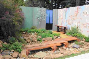 The plant everyone asked about in my show garden was the Eucalyptus cinerea ‘Silver Shadow’. I think it was the hero in my design because it fits nicely in the centre of the design without dominating the space, and its beautiful silver foliage complemented the cool colours of the surrounding walls. It’s an excellent feature tree for small temperate gardens as it is a hardy native with a compact form.