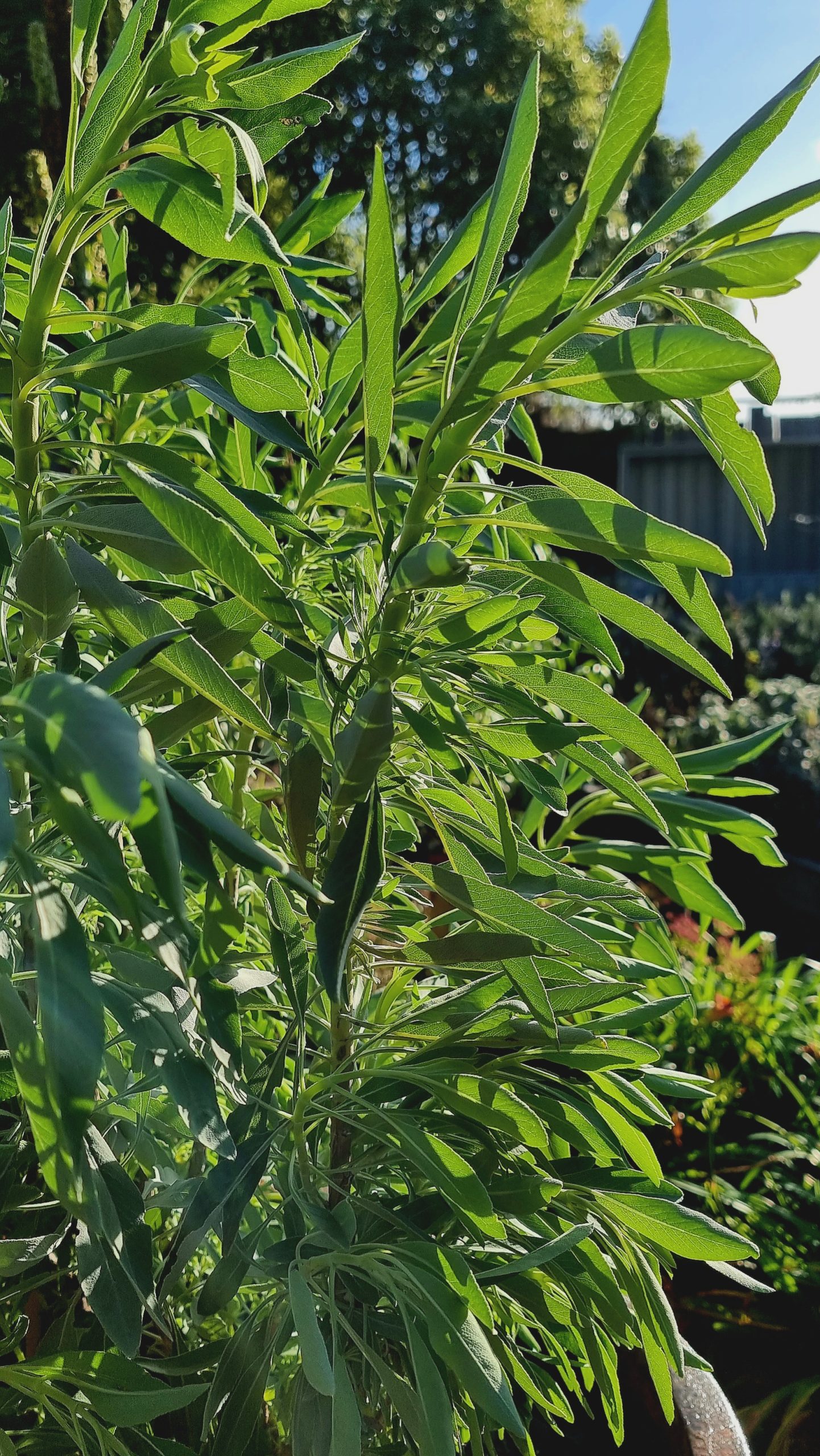 I haven’t done an intentional harvest yet. If I’m called to prune I make use of the trimmings, and occasionally a branch is chosen for me by the overzealous resident Wattle Bird. Most of my time spent with this plant is in conversation. A friend, and plant connection I hope to have for years