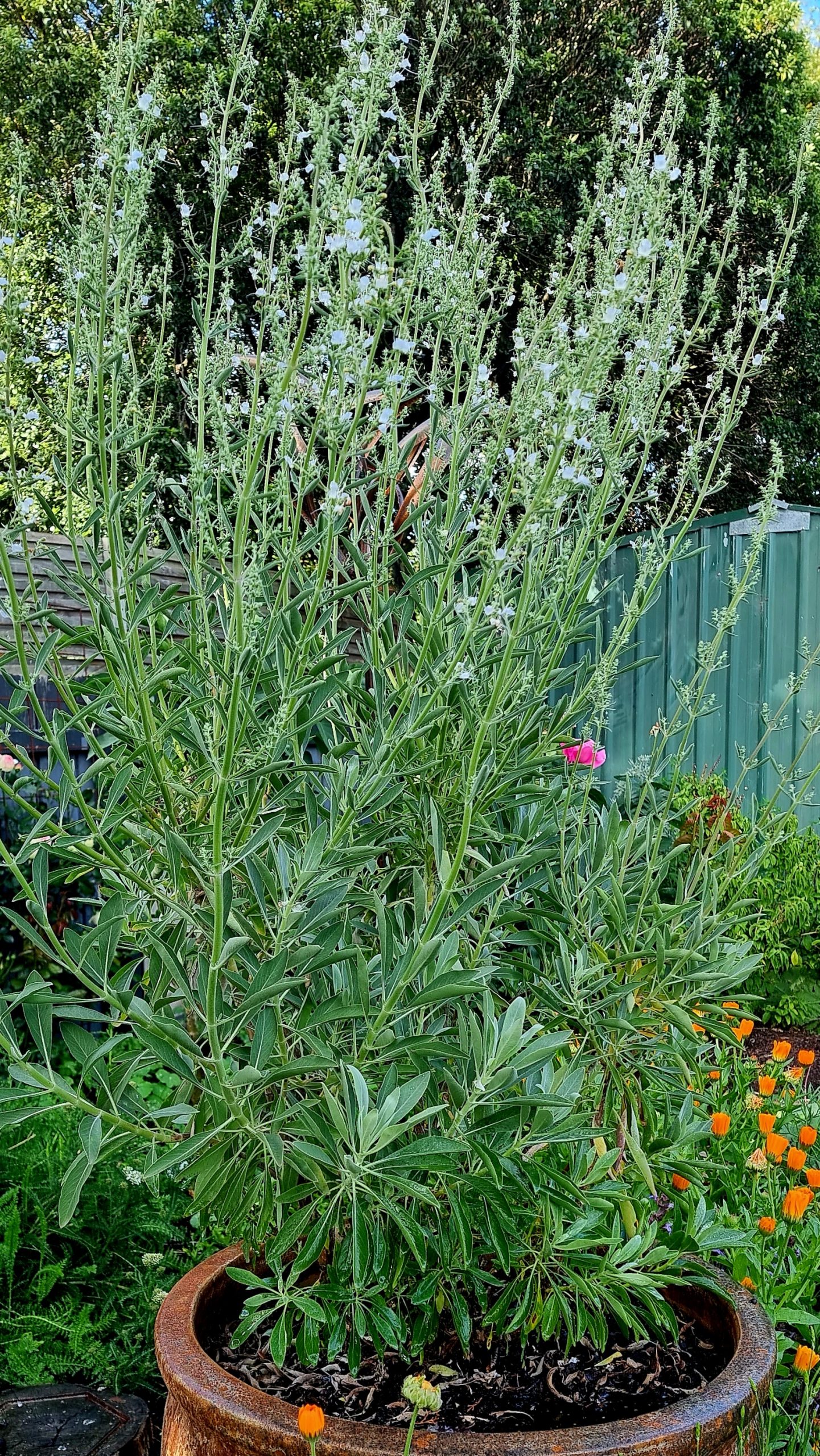 I sowed a few seeds under a grow light, and to my delight, they germinated! (I’m not a good seed grower, I lack the consistency often required, as you’ll discover as the story continues). I babied the seedlings, feeling like these special plants had accepted my invitation, I had better keep them alive! Over time I potted them up into increasingly bigger pots, always weary not to give them too much space, too much new mix to hold moisture. Sometimes known as Californian White Sage, native to Arid America, I was nervous to strike a balance between the space and water for growth and mimicry of its natural conditions. I’m in not-very-Califorian Melbourne.