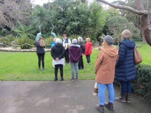 Our next stop was Geelong Botanic Gardens, the fourth oldest Botanic Garden in Australia. The group split up to be guided by volunteer Guides, exploring the history of the Gardens and being introduced to some ancient trees dating to the Garden’s inception: a giant Californian Redwood, a huge Ginkgo biloba and many Palm varieties. A Pit Glasshouse dating back to 1860 and other heritage buildings are still on the site. We also learnt of their recent works to provide a new Conservatory and obtain a secure water supply.