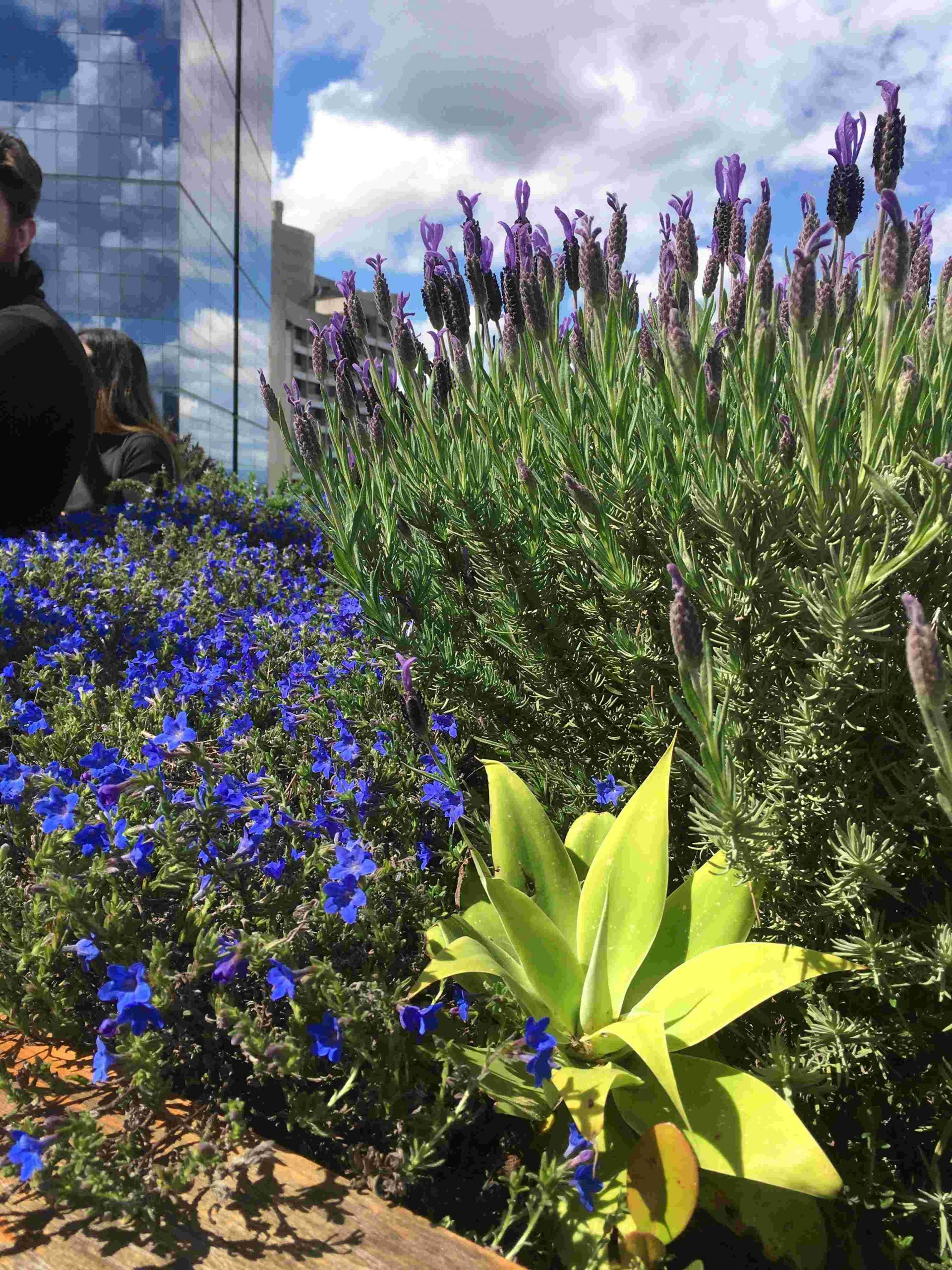 The planting encourages biodiversity in this densely urban environment, including creating a valuable habitat for birds and bees (a surprising sight to witness so high up). We were even surprised to learn of a recent visit by a cockatoo!
