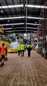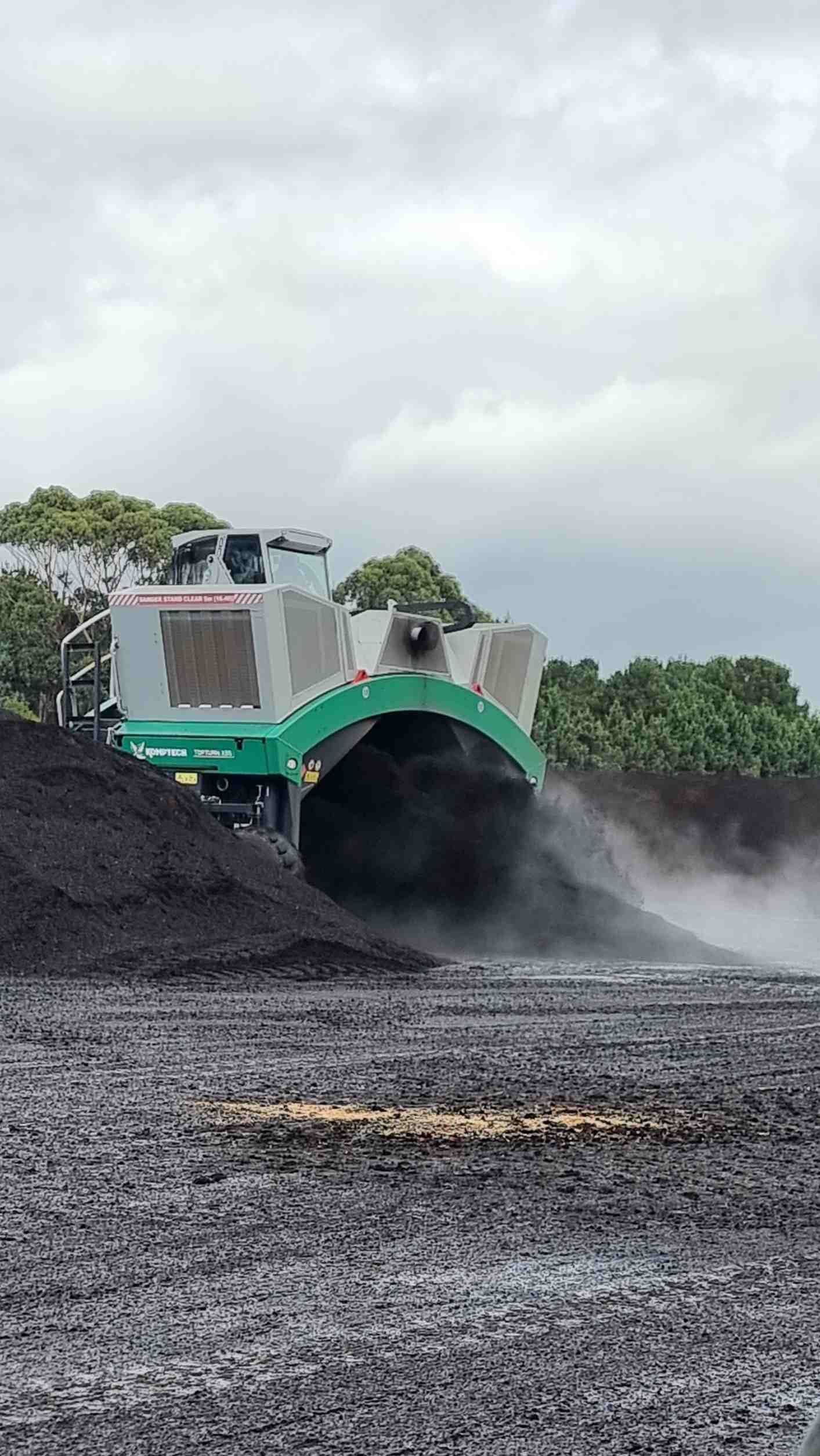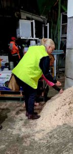 We were then introduced to GrowFibre, a product that uses the heartwood of the pine, replacing less sustainable products like peat and coir in a mix. We then went to the sheds where the batching and bagging is done. AGS combines machinery and technology that mix and dispatch or bag potting media batches efficiently and accurately with skilled staff that operate and monitor the machinery. And finally we saw the windrows of pine bark that form the basis of potting media. Each checked multiple times a day and turned to maintain temperatures to aid composting and kill pathogens.