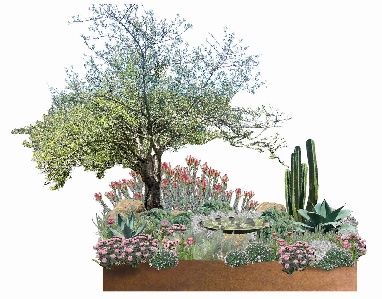 Emma Sheppard-Simms (Plantery Landscape Architecture) and La Muxlow (La Muxlow Garden Designs), are constructing a garden in this year’s Border Garden Competition at MIFGS. Oasis, their design, envisages a cool, green refuge for Australian gardens that is designed to be low-maintenance and beautiful. It contains a show- stopping collection of rare sculptural plants placed within soft clouds of silvery-grey perennials and aqua green groundcovers. Biodiversity is also a central theme of the design, and the plants in Oasis provide important habitat for a range of garden creatures – from the smallest of microbes, to insects, reptiles, amphibians and native birds.