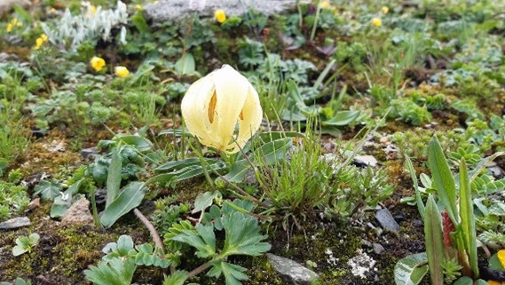 The diversity of plants in these alpine areas was astounding. The tour took us through several different habitats from the low-lying, boggy woodlands beside rivers and lakes, to shrubby hillsides covered in dwarf Rhododendrons and up to the scree slopes and snow line where tiny plants hung on for dear life. On the Zhongdian plateau in an area little more than a large paddock, we found the only patch of Thermopsis barbata (Black Pea) in the world! Pictured below. This area was incredibly dense with so many interesting alpine species – Irises, Stelleras, Euphorbias to name a few.