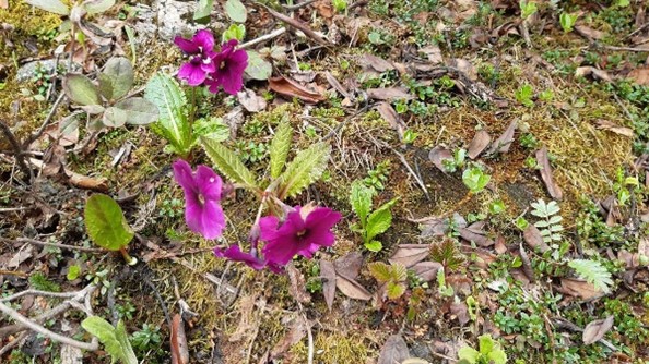 There were many forms of Primula throughout the tour. Whilst typically they grow beside streams, many species were growing up on rocky hillsides where they take advantage of the moist atmosphere. Pictured below are P. deflexa,  P. sikkimensis, P. russeola and P. tsariensis.