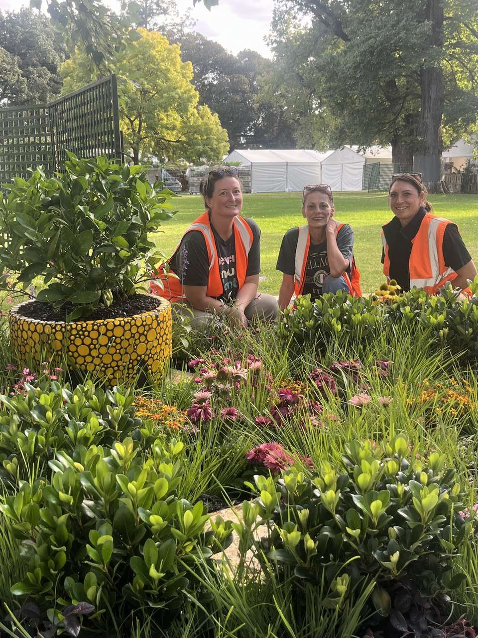 Bottom left, the Border Garden pictured with (L-R) Fern Buckle, Judy Witherden and Shannon.