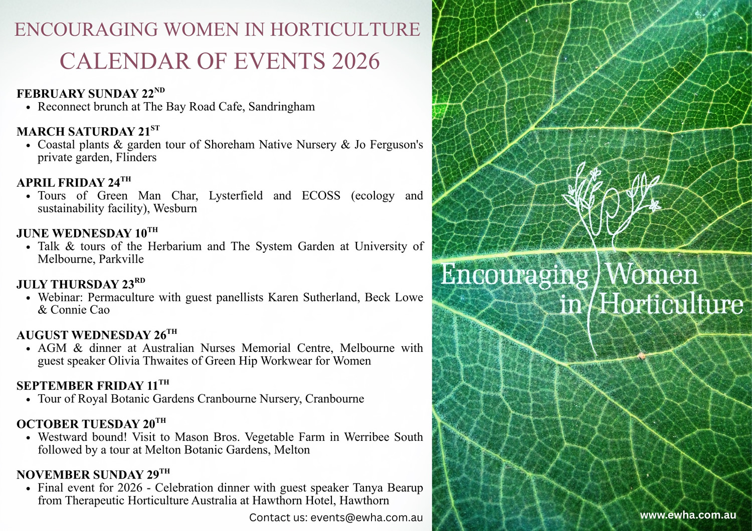 This is an image listing the events that will be held in 2026 by EWHA. There is also a picture of a green leaf with veins.